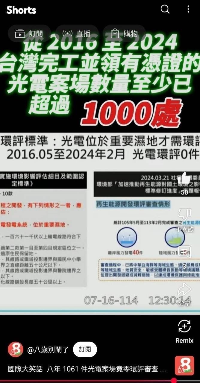 → : 笑死,其他發電都要環評就你光電不用喔?25F 49.214.3.81 台灣 11/23 07:43