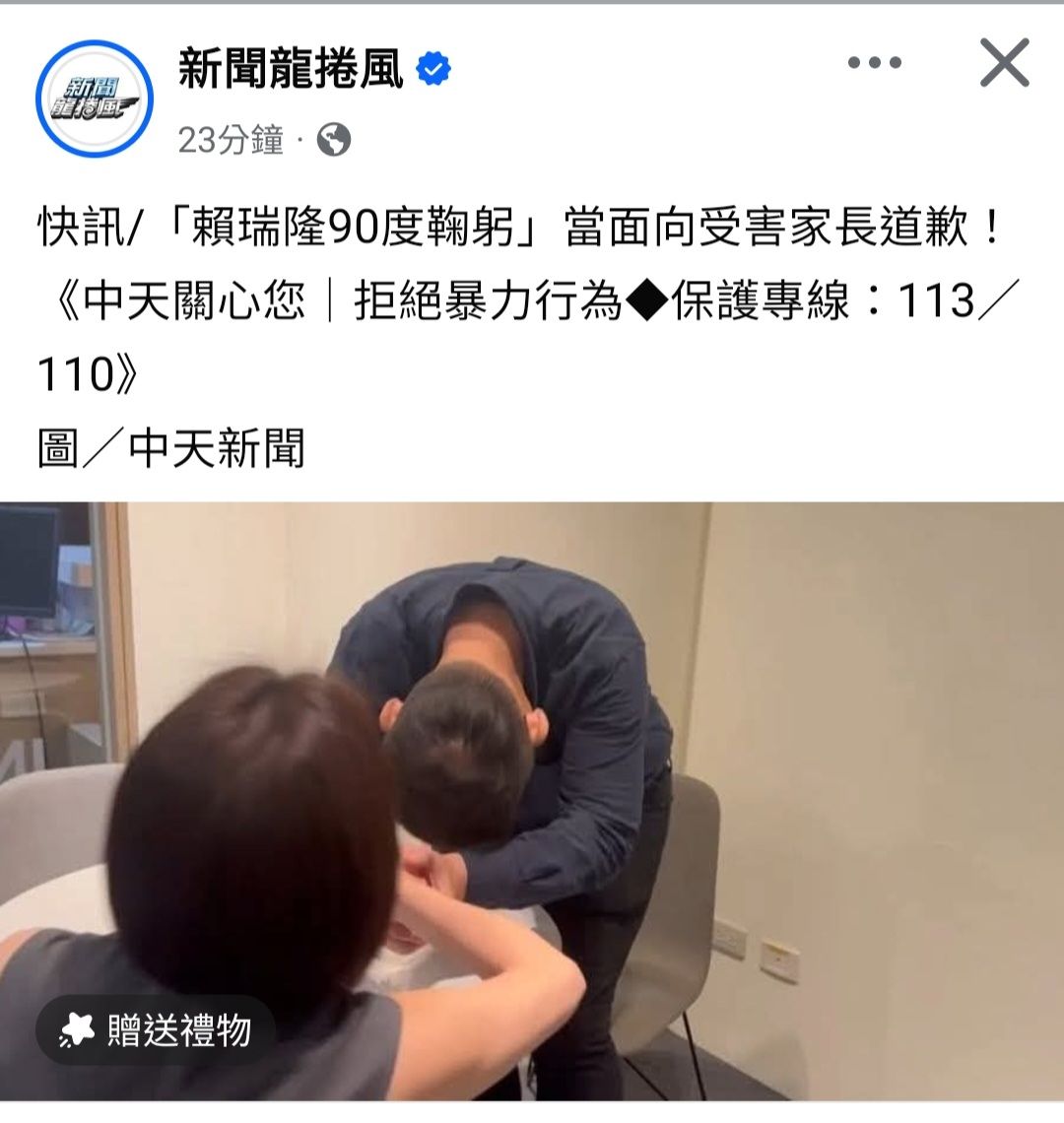 長,學習如何做人。過程中賴瑞隆一度起身向孩子媽媽握手道謝,並頻頻說謝謝。