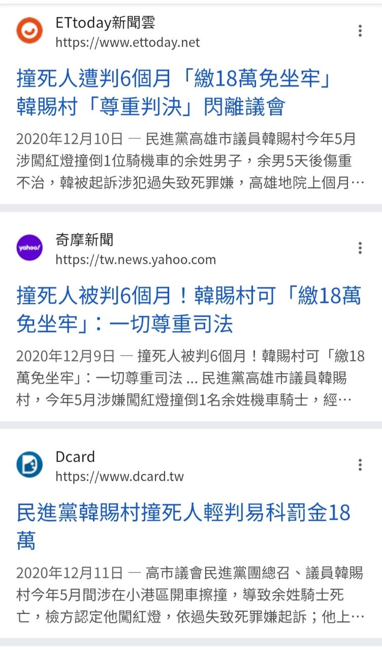 我剛去查韓國瑜撞死的那個