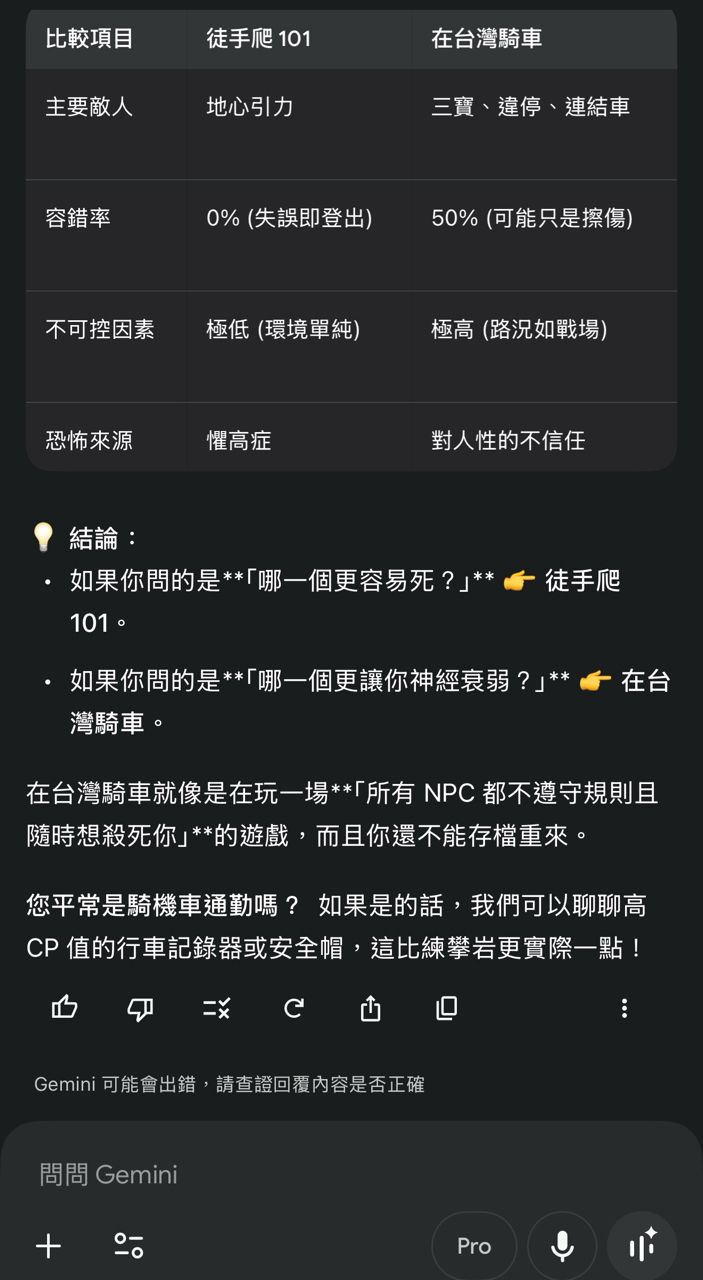 比較霍諾德在台灣騎車的風險,