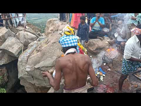 隨後祭司跪地舉起包袱並掛在肩上,以增加額外的重量,接著一邊搖鈴一邊走到懸崖邊,
