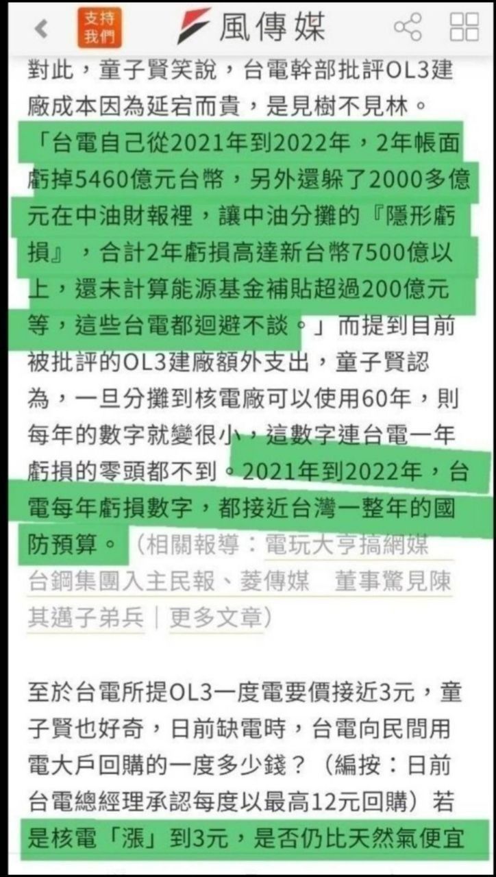 → : 火力及綠能的傻子同樣不少