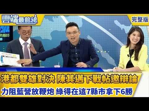 港都雙雄對決 陳其邁下戰帖:辯論越快越好 力阻國民黨放鞭炮 綠得在這7縣市拿下6勝│雲端最前線第471集(20181102完整版) - YouTube 雲端最前線第471集:港都雙雄對決 陳其邁下戰帖:辯論越快越好 力阻國民黨放鞭炮 綠得在這7縣市拿下6勝 ●主持人:楊文嘉 ●來賓: 立法委員 許智傑 國民黨文傳會副主委 洪孟楷 資深媒體人 黃暐瀚 韓國瑜座談會主持人 李明璇 時事評論員 王時齊 ●內容: Q:不畏韓國瑜 陳其邁下戰帖:辯論越快越好 Q:向韓國瑜...