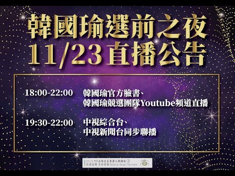 #韓國瑜 ❂選前之夜 11/23(五) 造勢現場 全程直播! #打造高雄全台首富之夜 - YouTube 韓國瑜 選前之夜❂打造高雄 全台首富之夜 中視 CH10:11/23(五)20:00-22:00 中視Youtube頻道: 11/23(五) 全程網路直播!