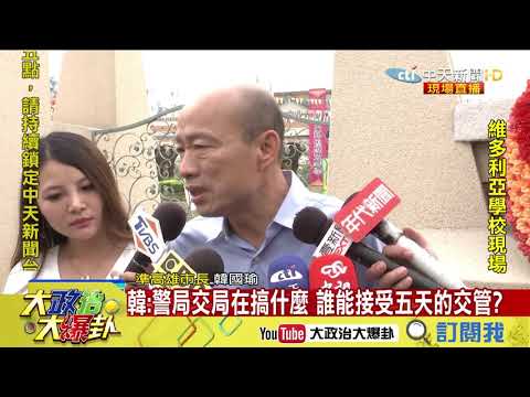 【精彩】就職交管挨批 韓國瑜:會請陳美雅議員跟交通局協調 - YouTube #大政治大爆卦 #政治 #時事 「如有任何營業使用,必須事先取得書面同意」 「未經著作權人事先書面同意,勿將內容用於商業性質之分享、連結。」 《大政治大爆卦》中天新聞台52頻道/每週一至週五下午2點 《大政治大爆卦》官方YouTube頻道:
