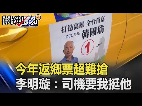 今年返鄉票超難搶!李明璇:小黃司機突然轉過頭拜託我要挺「他」!關鍵時刻20181031-2 李明璇 陳政聞 陳麗娜 - YouTube 今年返鄉票超難搶!李明璇:小黃司機突然轉過頭拜託我要挺「他」! 「黑色愛河」是青年沒看到的過往慘況?陳:民進黨打造了美麗高雄! 高雄市府建設做得好經濟卻…小港火鍋店生意好卻難逃倒店命運! 《劉寶傑》官方粉絲團 《關鍵時刻》粉絲團: