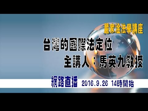 台灣的國際法定位(第一節 完整版).東吳大學嚴家淦法學講座.馬英九教授 9/26/2016 - YouTube 由於講座第一節時因技術問題造成轉播youtube影片有部分漏失。因此特別上載原影音檔,供大家觀看。 造成不便,敬表歉意!