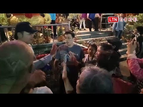 : 有人對著正要離開的韓國瑜嗆,「不要握市長的手了!」有人指著廟方的工作人員罵,