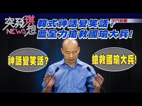 韓式神話變笑話?藍全力搶救國瑜大兵!【2019.09.07『突發琪想』週末精選】 - YouTube 昔日韓神已走下神壇?英韓對決新民調!英已大贏近13%? 不再全黨救一人?傳...藍黨中央啟動「換瑜備胎」? 吳請張顯耀傳話會面!換瑜備胎說!成羅生門? 換瑜耳語發酵中?吳魁急駁斥!國民黨還告撰文記者? 救選情! 搶救國瑜大兵!韓祭「勝選三箭」… 破除換瑜說?吳專程南下替韓造勢!還上演愛的抱抱… 韓還讚吳魁忍辱負重...