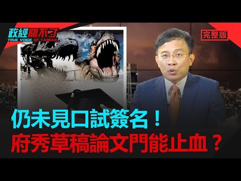 #政經關不了 #關不了正晶 #政論節目 #彭文正 #李晶玉 今日主題: 未見口試簽名 府秀草稿論文門能止血? 蔡英文論文風波 近500萬人認為有問題 著作當論文!? 總統府上演現代指鹿為馬!? ➤抖內《政經關不了》: 1. 台灣觀眾銀行捐款 ➔ 元大銀行806台北分行 帳號:20032000051114 戶名:政...