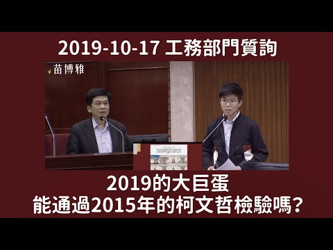 2019的大巨蛋,能通過2015年的柯文哲檢驗嗎?【20191017_工務部門質詢】 - YouTube 2019年10月,在台北市政府都發局長黃景茂的裁示之下,大巨蛋通過都審。 所有市民念茲在茲的,就是「公共安全」。到底現在通過審查的大巨蛋,是安全的嗎? 我想,用柯文哲市長曾經提出的標準來檢驗,應該是很公平的。 4年前,柯文哲市長在臉書上發了一個「大巨蛋全民當家懶人包」,提出「柯昂星料理大巨蛋」的五個重要問題。 若...