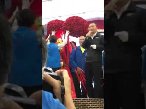 哇!好尷尬,整個彩球砸到侯市長的頭上,好險沒有大礙。