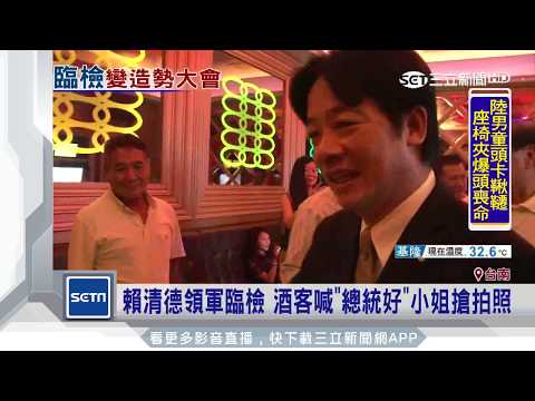 賴清德領軍臨檢 酒客喊「總統好」、小姐搶拍照|三立新聞台 - YouTube 暑假開始,台南市青春專案也開跑,市長賴清德昨(30)日晚間率大批人馬前往舞廳臨檢,當場成了焦點,酒客頻頻叫總統好,舞廳小姐更是興奮搶拍照,也主動和賴清德握手合照,宛如選舉造勢行程。