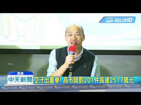 20190501中天新聞 空汙出重拳! 高市開罰201件高達2517萬元 - YouTube 高雄市長韓國瑜承諾要對高雄空汙出重拳,必要時採取行政手段,高雄市環保局配合政策,今年加強稽查,因此一到四月就有豐碩成果,開罰201件,累計2517萬元,較去年同期的160件,1805萬元還要多,而這也有賴高雄市民積極配合,像鳳山鎮北里民,最近因為發現有食品家工廠排放黑煙,里民聯手錄影蒐證並通報環保局,兩小時內就依...