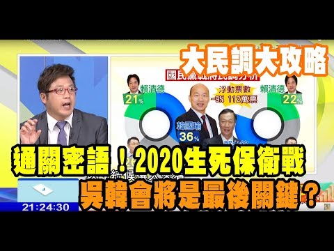 2019.04.28大民調大攻略完整版 通關密語!2020生死保衛戰 吳韓會將是最後關鍵? - YouTube #大政治大爆卦 #政治 #時事 「如有任何營業使用,必須事先取得書面同意」 「未經著作權人事先書面同意,勿將內容用於商業性質之分享、連結。」 《大政治大爆卦》中天新聞台52頻道/每週一至週五下午2點~ 《大政治大爆卦》官方YouTube頻道: