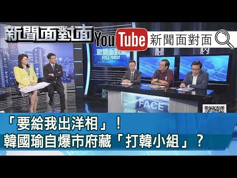 人氣不再?質詢賭氣!盟友變心!誰「黑」了韓國瑜?190524【新聞面對面】 - YouTube ●坦白從寬!行天宮發誓!杜紫宸打開韓流潘朵拉盒子? ●爆!韓國瑜自白昔日「鬼混」後...就遭爆「花天酒地」?好巧? ●「3700」謎題?羅淑蕾加碼:政治獻金...韓市長開「吉」? ●獨!622誓師大會只是開端!徐巧芯驚爆韓國瑜「護盤」計畫? ●新!指使楊秋興攻擊韓國瑜?郭董反問:我有那麼笨嗎? 來賓:張宏陸 黃創...