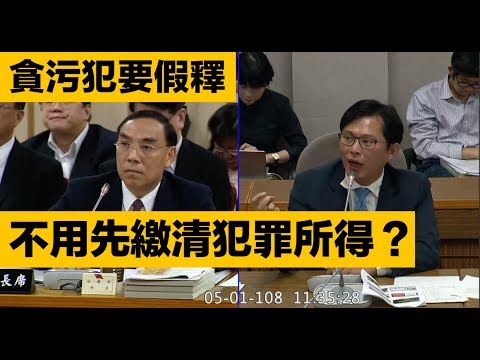 是否支持貪污犯繳清犯罪所得前不得假釋?法務部長:我個人支持| 黃國昌 質詢 法務部 2019 05 01 司法法制【立法院演哪齣?】 - YouTube 法務部長 蔡清祥 矯正署長 黃俊棠 ; (歡迎分享嵌入或混合剪輯)
