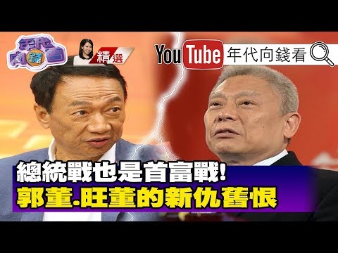 總統之戰也是首富之爭?!郭董戰旺董!到底誰怕誰?!誰被打中要害了?!【2019 06 15『年代向錢看』週末精選】 - YouTube 台灣首富的戰爭!郭董槓上旺董!全為總統大選? 總統之戰也是首富之爭!郭台銘和蔡衍明怎結下樑子? 反送中挑起首富之戰?郭台銘嗆蔡衍明向國台銘邀功? 來賓:康仁俊、鄭佩芬、黃創夏、邱明玉 臉書粉絲專頁: 最美主持人:陳凝觀 播出時間:壹電視新聞台...