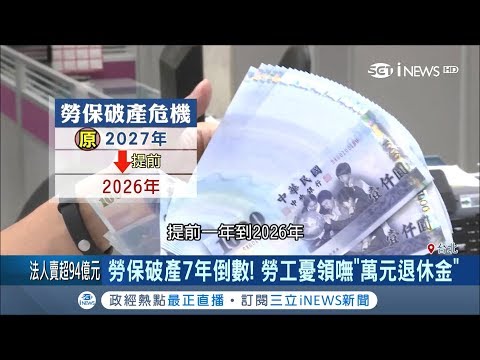 勞工剉咧等~勞保年金破產年限再往前 2026恐就領無萬元退休金|記者 黃瀞瑩 馬家豪|【台灣要聞。先知道】20190311|三立iNEWS - YouTube ➲ iNEWS 最正新聞直播 ➲ 訂閱 iNEWS 最正新聞台 ➲追蹤鄭知道了粉絲團: ➲ 推特 ➲ 即時熱點 三立新聞網