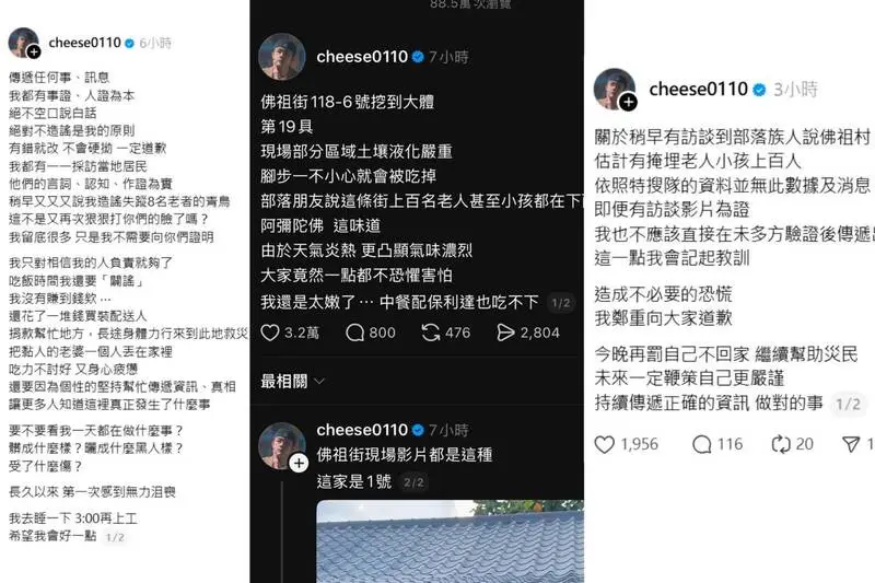 小草PO文「上百名老人孩童在佛祖街下面」 搜救員怒斥造謠才刪文