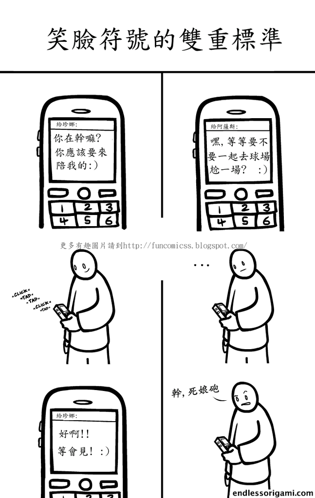 反正就是娘娘腔囉~~~不過我也超愛用笑臉符號的耶...Orz...