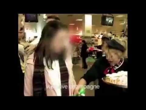 「驚喜」,讓女子尷尬不已,當下捧著蛋糕不知如何是好,最後羞愧地快步離去。