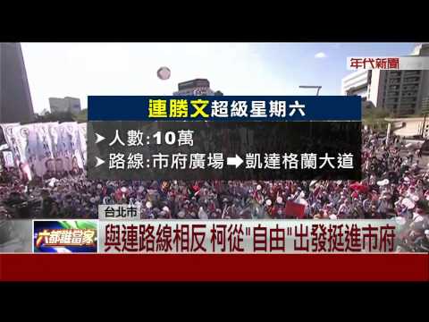 柯文哲愛與擁抱台北遊行活動,從23日下午開始,現場湧入眾多群眾,宛如嘉年華會,柯文哲辦公室宣稱,現場人數突破二十萬,比起昨天連勝文遊行自稱人數破十萬,足足多出一倍。另外遊行氣氛也大不同,昨晚連勝文與妻子蔡依珊,現場潸然淚下,但柯文哲夫妻卻是笑著遊行,連柯遊行,完全走出不同風格。