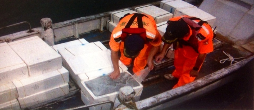 「整齊的保麗龍箱露餡!」安檢人員表示,當時發現船上有大量整齊堆疊好的保麗龍箱,