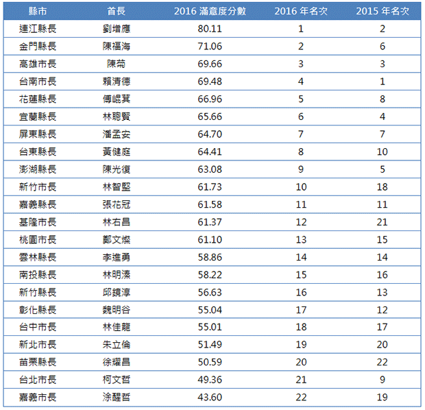 ▼縣市長今年與去年的排名。(圖/翻攝自天下雜誌第606期)