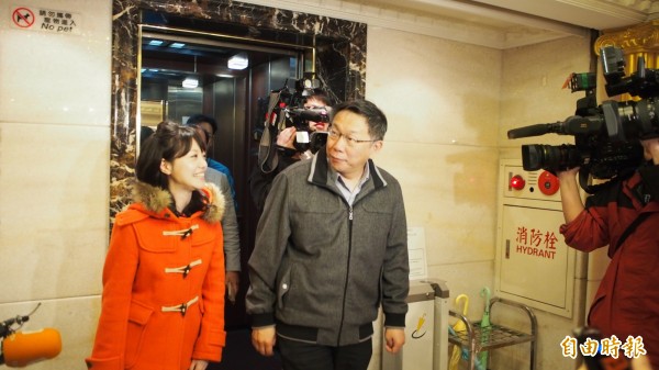 柯文哲則遲至7點才現身。柯文哲見到大批媒體,驚訝問「怎麼了,你們是要來聽我唱歌