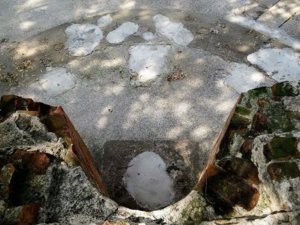 運轉軸心,與花岡岩軌道上的固定點,凹處全被灌上水泥,嚴重破壞古蹟。