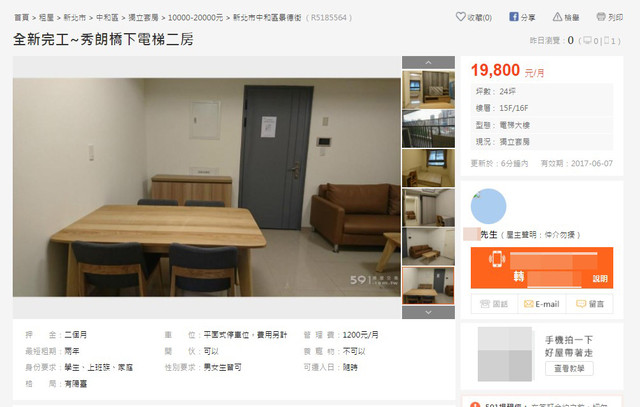 力;但一名網友在「爆料公社」踢爆,有人竟在租屋網貼出訊息,欲以每個月1萬9800元