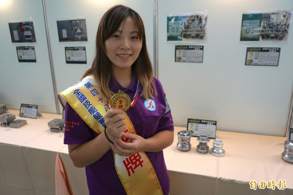 「男生可以做,我也能做到!」今年大甲高工畢業的王宣柔在CNC車床奪金,家住南投東