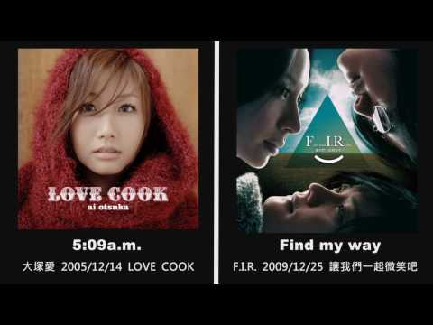 左聲道是大塚愛早期作品,右聲道是F.I.R.致敬!?作品 大塚愛 2005/12/14 LOVE COOK - 5:09a.m. F.I.R. 2009/12/25 讓我們一起微笑吧 - Find my way