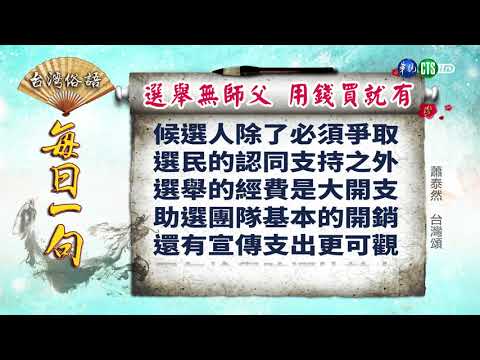→ : 《台灣俗語》每日一句「選舉無師父 用錢買就有」20F 03/07 13:04