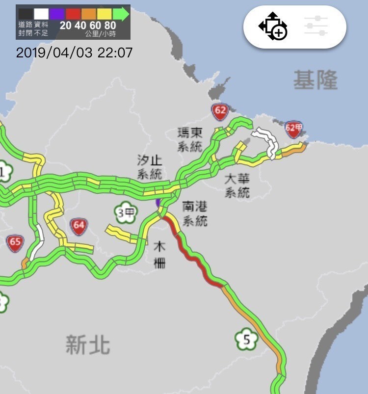 晚間10時許,國五南港系統至石碇時速僅25公里,石碇至坪林行控31公里、坪林行控至頭