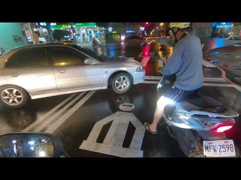 → : 轉的,按兩下喇叭後居然直行切到機車待轉區,原來是要左轉