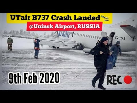 俄羅斯烏塔航空一架波音737,9日在落地時發生意外,導致起落架斷裂、機腹著地,一直在結冰的跑道上滑行到一旁積雪中才煞住,... ...