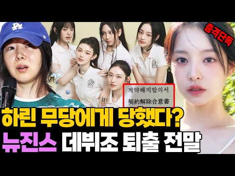 ewJeans 出道組 Harin 被退團全過程〉的影片,並展示了 Harin 與 ADOR 的合約。