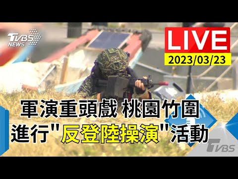 國軍今天(23日)上午在列為「紅色海灘」的桃園市竹圍海灘進行兩棲登陸模擬攻防,因應中國可能對台灣發動的兩棲登陸攻擊,動員裝甲旅兵力,以三輛戰車與一輛雲豹甲車為主力,與假想敵進行巷戰反擊。