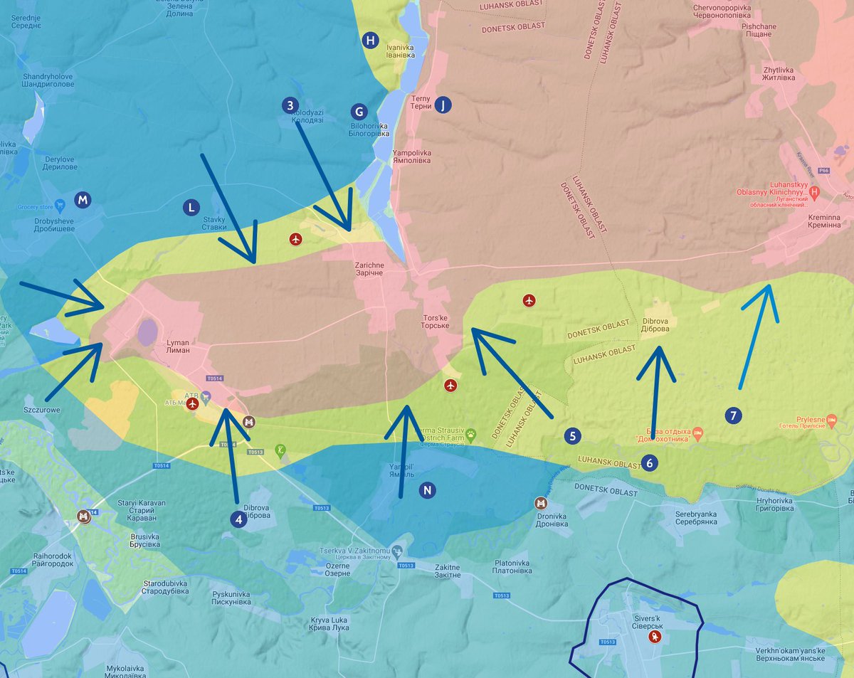 另一位還算蠻可靠的戰況地圖OSINT研究者,最新的Lyman戰況判讀
