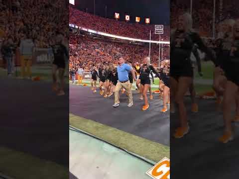 → : 走,祖爸推開警衛然後跟著啦啦隊一起跳起來
