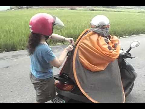 必須要把安全帽拿下來才能穿,所以如果半路開始下雨最好趕快找騎樓穿