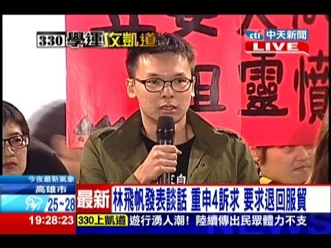 服貿/330太陽花黑潮佔凱道 林飛帆上台完整談話|三立新聞台 - YouTube 更多新聞與追蹤報導,敬請持續鎖定【 三立新聞 】 三立新聞網【 】與您即時互動、緊密相連 ◎ 林飛帆演講全文逐字稿: 50萬「黑潮」湧上凱道,表達反對黑箱服貿...