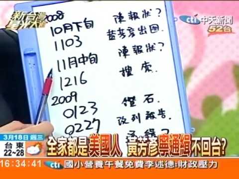 說真的現在大家都在懷疑馬總統, 我也希望以後檢調在正副總統卸任後, 好好清查一下他們三或四等親內的金融狀況, 看看是否有違法情事。另外像協助扁家洗錢超過四億元, 還幫吳淑珍保管珠寶及現金的前新光醫院副院長為何要逃到美國呢? 應該就是到美國幫阿扁處理洗錢與阿珍珠寶的事宜吧? 聽說2012年總統大選黃芳彥還砸下5,000萬元, 暗中運作所有人脈,動員僑界返台投票, 難道中美沒有司法互助的辦法可以將其潛返接受審判嗎?