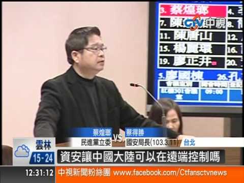 國安局長蔡得勝坦承知情???【中視新聞】新戶政系統軟體外包大陸廠商 爆國安憂慮 20140311 - YouTube 過年後新戶政系統當機民怨不斷,立委又爆料,新系統的軟體竟然是外包給大陸的網路公司,國安局長蔡得勝坦承知情,但向行政院與國安會資通辦反應都沒處理,而行政院長江宜樺卻說,昨天質詢後才知情,甚至連科技部長張善政都不知道,他也承諾將在一周內完成調查並提出報告。 【訂閱中視新聞】