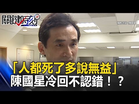 「人都死了多說無益」林奕含以死控訴 陳國星竟冷回完全不認錯!? 關鍵時刻20170504-1 朱學恒 黃世聰 林俊憲 - YouTube 「人都死了多說無益」林奕含以死控訴 陳國星竟冷回完全不認錯!? 補習班鬧分家圍事阻擋學生 為搶補教業大餅汽油彈、潑漆樣樣來! 巧合還是作弊?凡有韓、陳、賴、蕭四位評審 陳國星公司每標必中!? 《劉寶傑》官方粉絲團 《關鍵時刻》粉絲團: