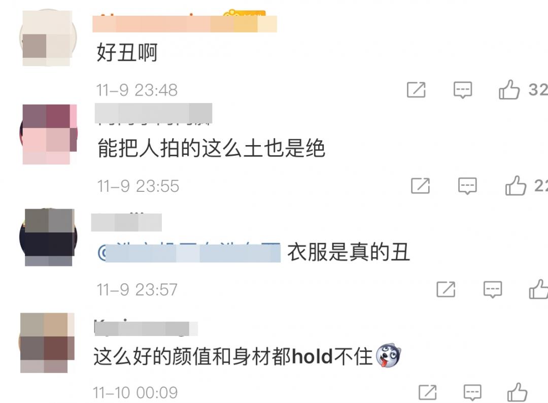 啊」、「能把人拍這麼土也是絕」、「真的是入相隨"俗"啊」、「衣服是真的醜」。