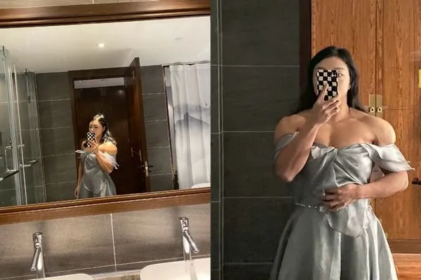 此外,佳佳還被攝影師捕捉到一張拉著裙子的背影照,背部的肌肉同樣十分強壯,可見她