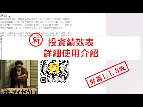 去年有分享的投資紀錄與績效計算表也有增加新功能了。